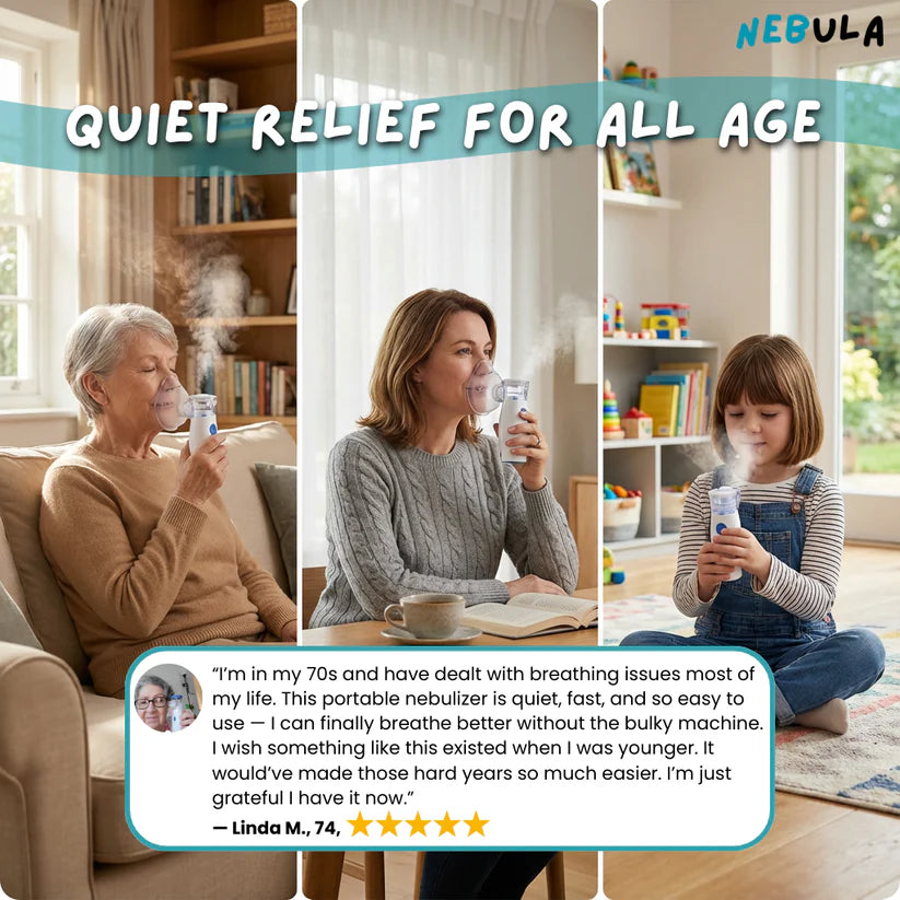 It's midnight. Your child wakes up wheezing. You're tired, but you're calm—because Nebula is charged, ready, and within arm's reach. You gently place the mask, press one button, and within minutes, their breathing eases. No drama. No fear. No sleepless night.